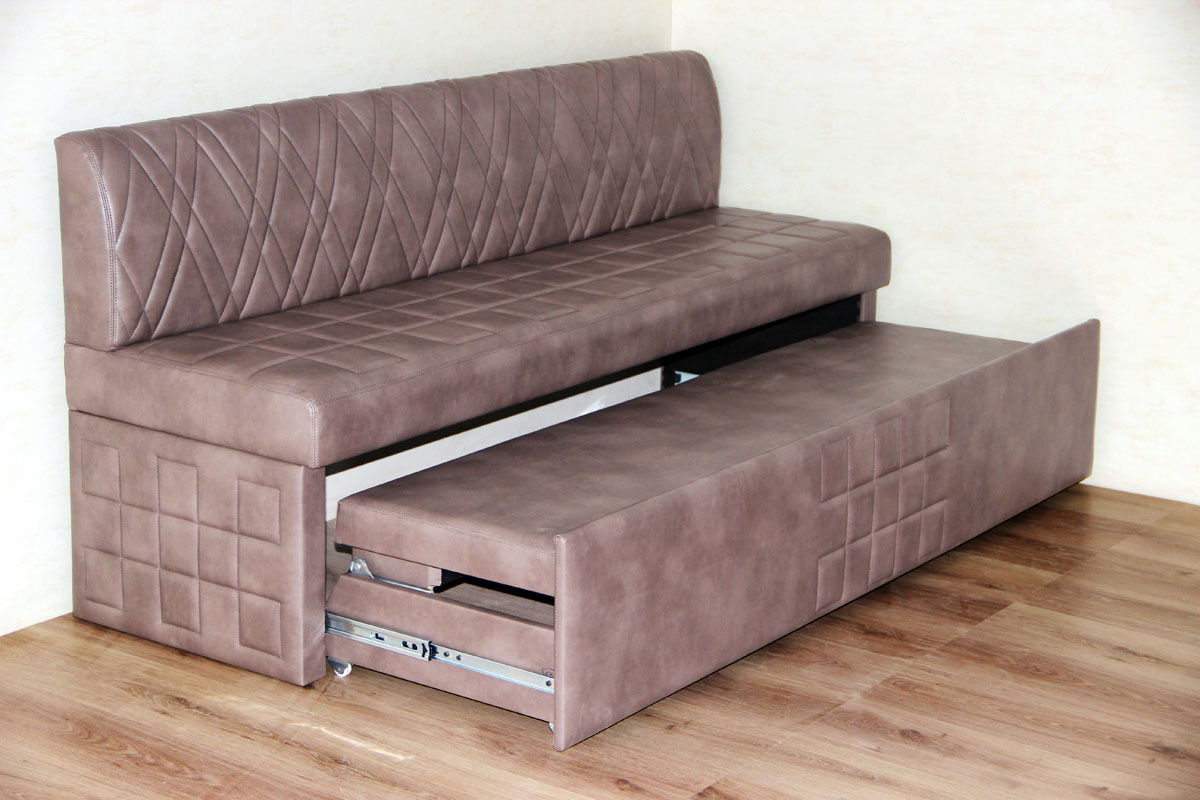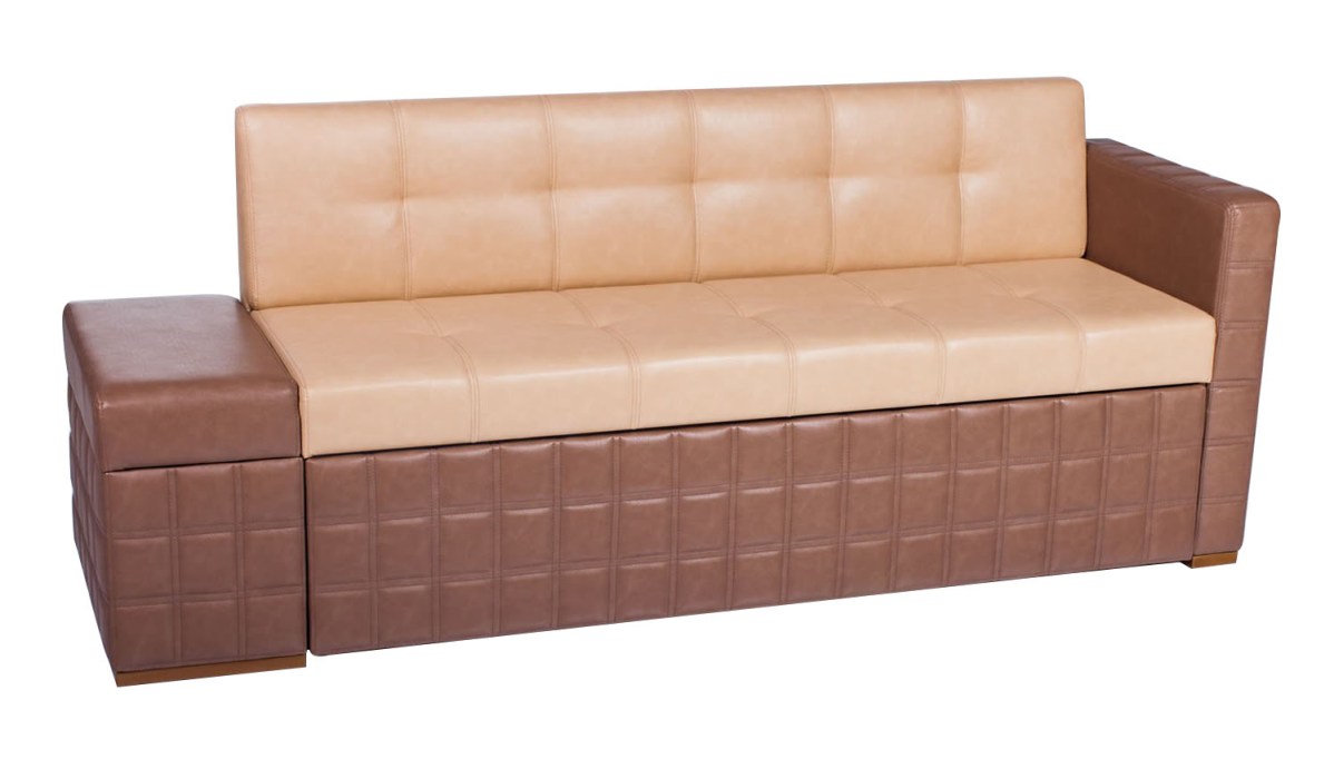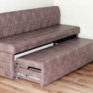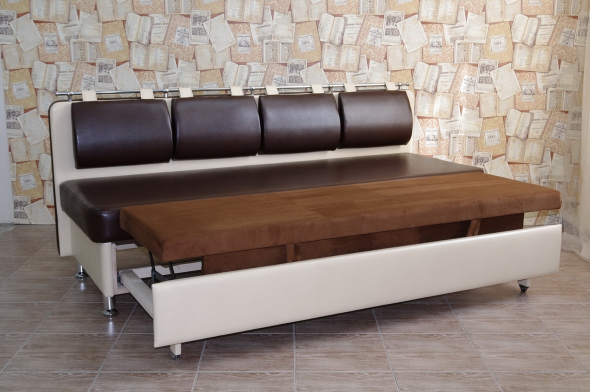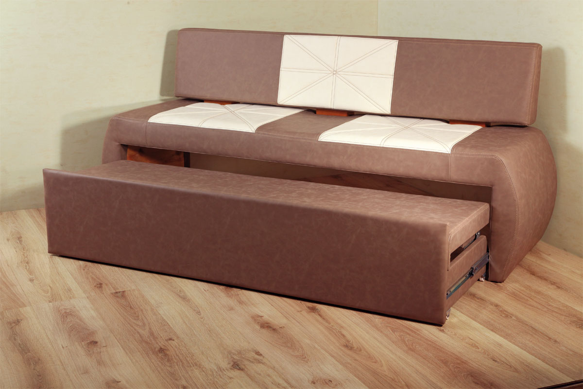 Mit Aufbewahrungsbox. Die meisten Sofas für die Küche haben einen Lagerraum. Oft werden die Schubladen durch Anheben des Sitzes geöffnet und haben eine Positionssperre im Freien. Um den Tisch nicht häufig wegbewegen zu müssen, wurden für den häufigen Gebrauch Hebemechanismen an der Seite entwickelt. Die inneren Abmessungen der Box sind 3-5 cm kleiner als die Gesamtwerte des unteren Teils des Sofas. Es ist in einfachen und faltbaren Modellen gefunden.