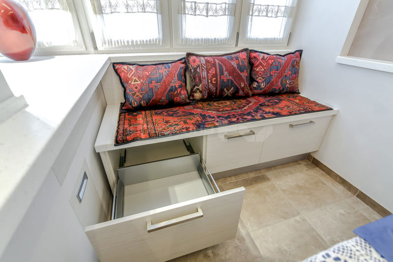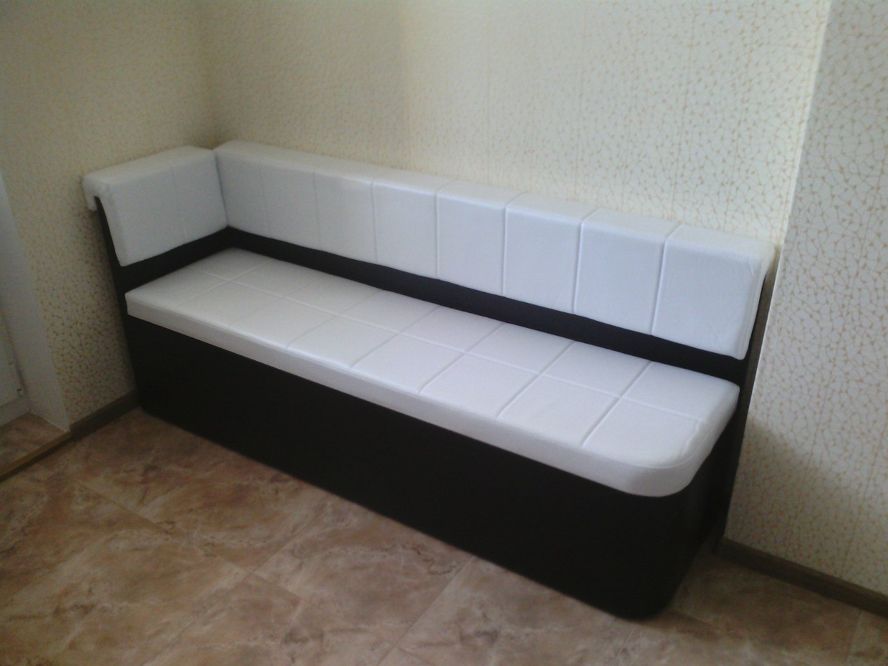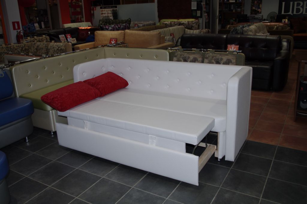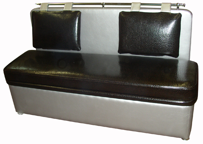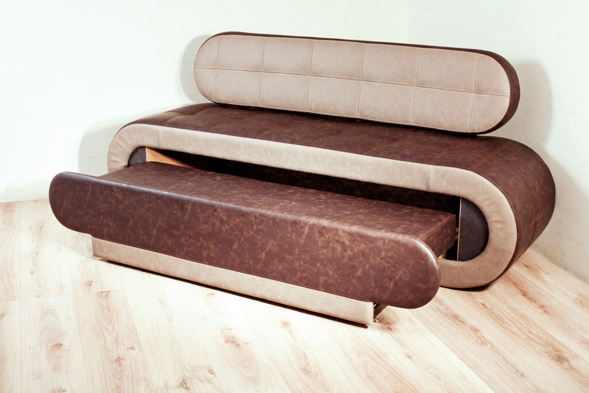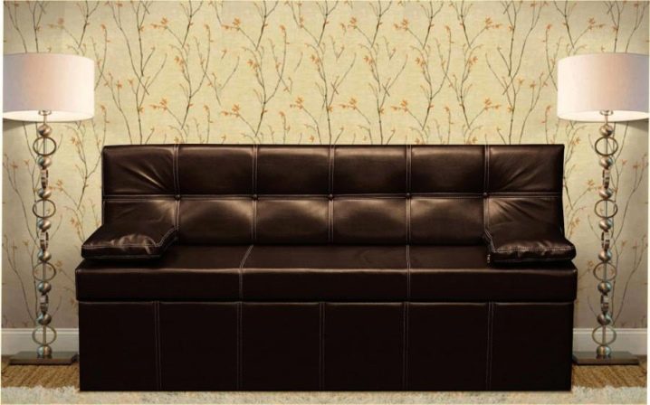 Mit Aufbewahrungsbox. Die meisten Sofas für die Küche haben einen Lagerraum. Oft werden die Schubladen durch Anheben des Sitzes geöffnet und haben eine Positionssperre im Freien. Um den Tisch nicht häufig wegbewegen zu müssen, wurden für den häufigen Gebrauch Hebemechanismen an der Seite entwickelt. Die inneren Abmessungen der Box sind 3-5 cm kleiner als die Gesamtwerte des unteren Teils des Sofas. Es ist in einfachen und faltbaren Modellen gefunden.
