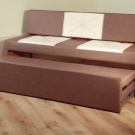 Sofa Bank (ohne Rückseite) - Licht im Vergleich zu anderen Design. Unterart der Bank, daher der Name. Bei einigen Modellen ist eine Aufbewahrungsbox vorgesehen, die entweder groß - vom Boden bis zur Sitzbasis oder klein - 10-15 cm und direkt unter dem Sitz platziert werden kann. In extrem seltenen Fällen ist eine weiche Bank mit einem Bett ausgestattet.