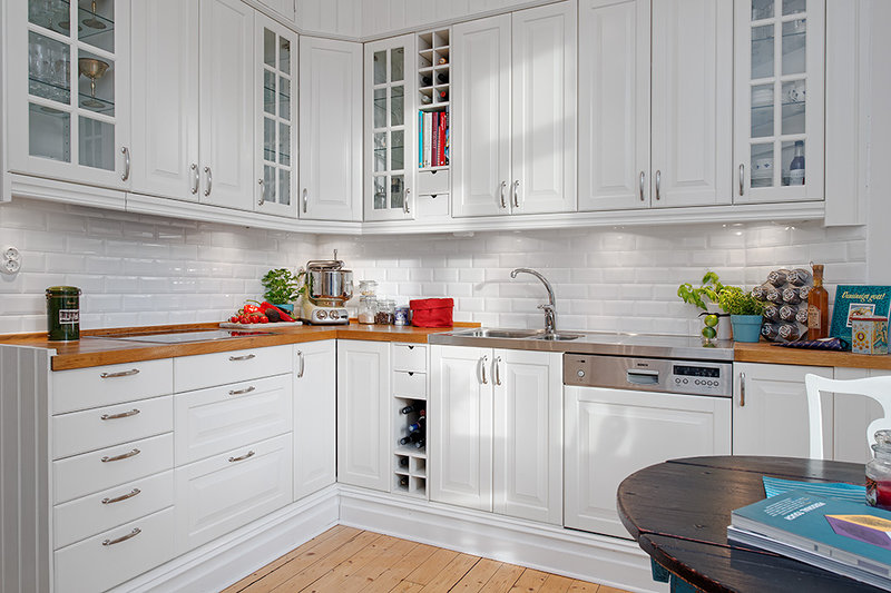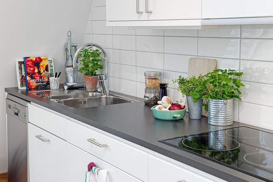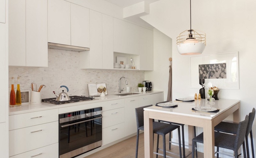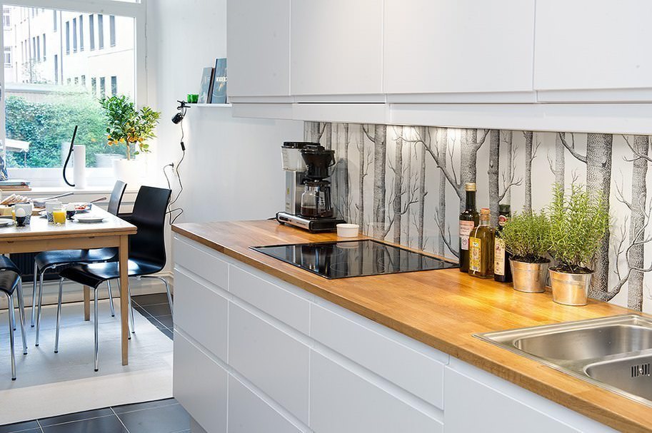 Einige Nachteile dieser Option enden nicht mit den Vorteilen. Wir müssen vorsichtiger auf die Küchenschürze aufpassen, denn die Flecken, leichten Verschmutzungen werden sich zeigen. Aber Genauigkeit, Raffinesse und Stil mindern nicht die weiße Farbe.