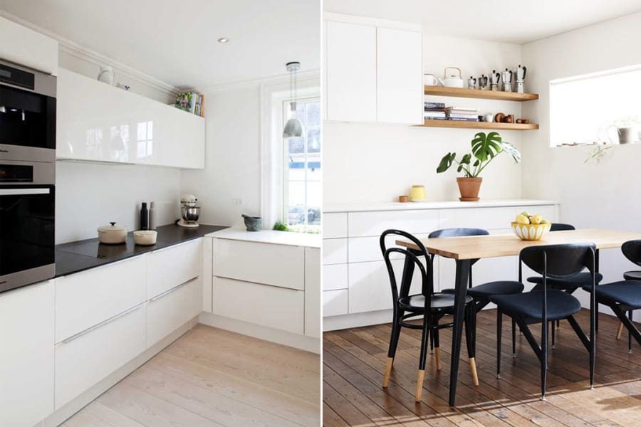 Trend Total White schlägt alle Beliebtheitssätze. "Dekorieren" Sie die Küche in einem weißen Farbton, achten Sie auf die kleinen Dinge und Dekor, die harmonisch vor dem Hintergrund aussehen werden. Universal-Palette ist für jede Art von Interieur geeignet.