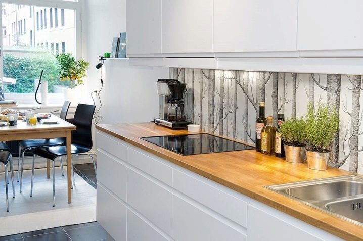 Die weiße Farbe von Naturholz ist das Streben nach Luxus. Erstens wird eine solche Schürze mit jedem Holzset in der Küche kombiniert.Zweitens wird er Ihren Wunsch nach einem ökologischen Lebensstil unterstützen. Die Registrierung eignet sich für rustikale, rustikale, provenzalische Gestaltung.