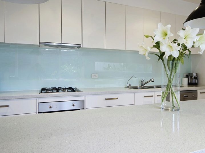 Bei der Schaffung einer praktischen Küche transparente Schürze aus gehärtetem Glas, bevorzugen Sie nicht Preis, sondern auf Qualität. Die italienische Produktion gilt als eine der wichtigsten in Sachen hitzebeständiges Glas, das keine Angst vor Temperaturschwankungen hat. Diese skinali Schürzen sehen in einem klassischen, avantgardistischen, skandinavischen Stil fantastisch aus. Weiße Farbe spiegelt die Fläche der gesamten Küche wider und macht sie optisch geräumiger. Ihre reflektierende Wirkung verleiht dem Raum sofort einen hohen Preis, Adel, Aristokratie.