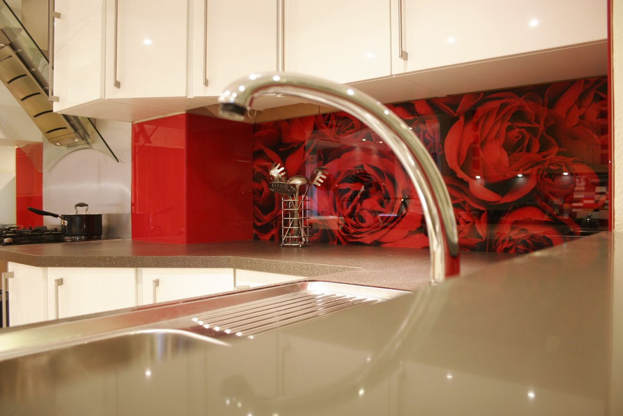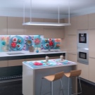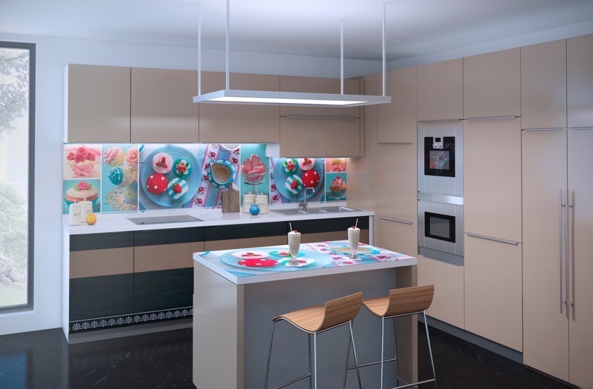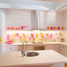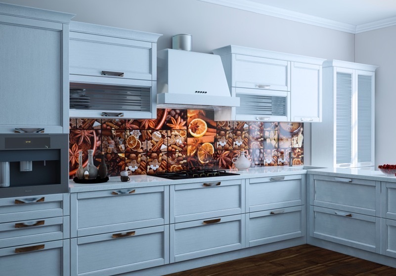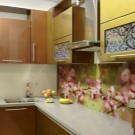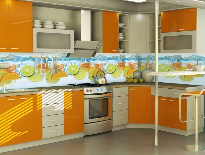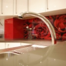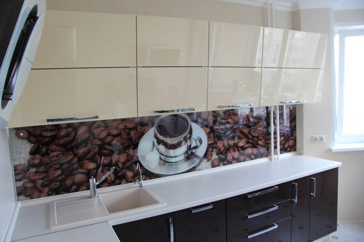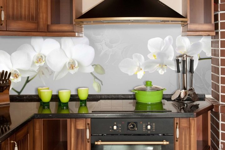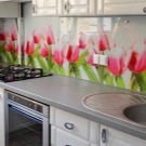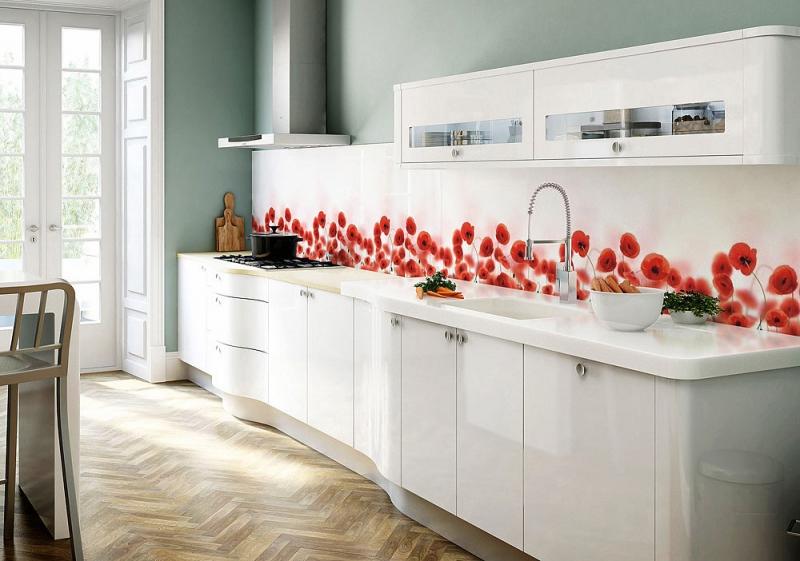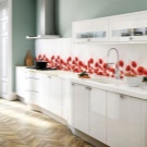 Zu den beliebtesten Optionen gehören Küchenschürzen, bei deren Gestaltung Fotodruck verwendet wird.Der Hauptvorteil dieser Optionen ist, dass sie helle und dunkle Innenräume gut ergänzen. Am beliebtesten sind farbige Paneele, die perfekt in die moderne und sogar klassische Einrichtung des Raumes passen. Oft in der Gestaltung der Küche finden sich Schürzen, die schöne Mohnblumen darstellen.