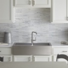 - Bei der Auswahl der Größe der Schürze beachten, dass er ein paar Zentimeter unter der Oberseite und unter den unteren Schränken gehen muss, um die Wand vollständig vor Verschmutzung zu schützen.