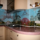 Küchenschürze ist der Raum zwischen der Arbeitsfläche (Tischplatte) und den Wandschränken. In der Regel wird die Wand an dieser Stelle nicht leer gelassen, da eine hohe Wahrscheinlichkeit der Kontamination besteht, aber mit etwas Material bedeckt ist, das als Schutz vor Feuchtigkeit, heißem Dampf und Fettspray dient. Eine solche Schürze kann entweder entlang der ganzen Wand oder ausschließlich über dem Ofen oder der Spüle angebracht werden. Es kann nicht nur seine Hauptschutzfunktion erfüllen, sondern auch dekorativ. Daher ist die Wahl des Designs der Schürze sehr wichtig und nimmt in der Regel viel Zeit in Anspruch, denn sie muss sich harmonisch in das Kücheninterieur einfügen und sich stilistisch dem Küchenset annähern.
