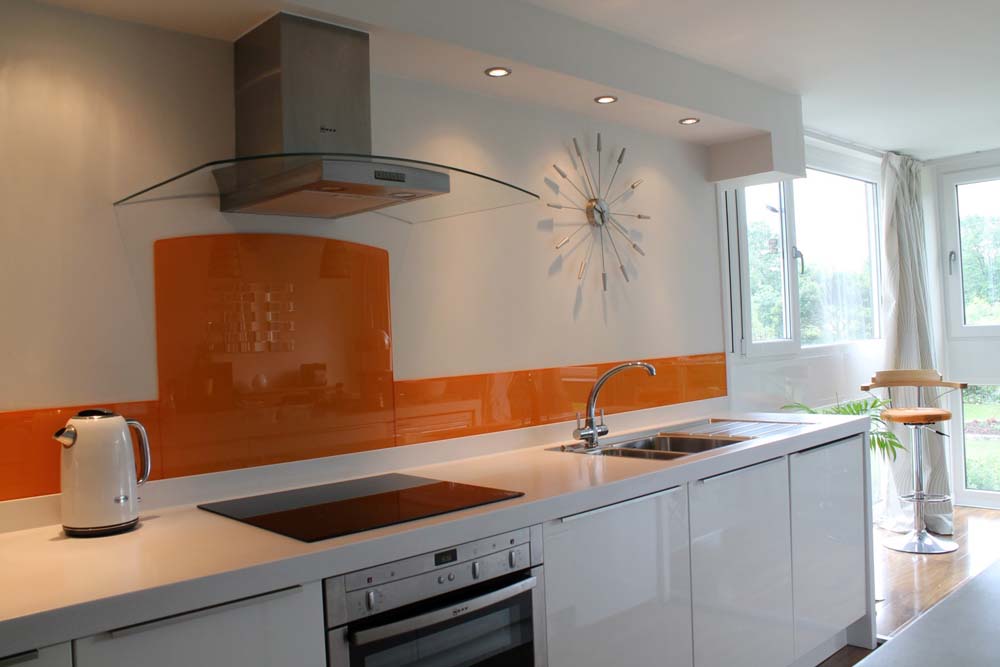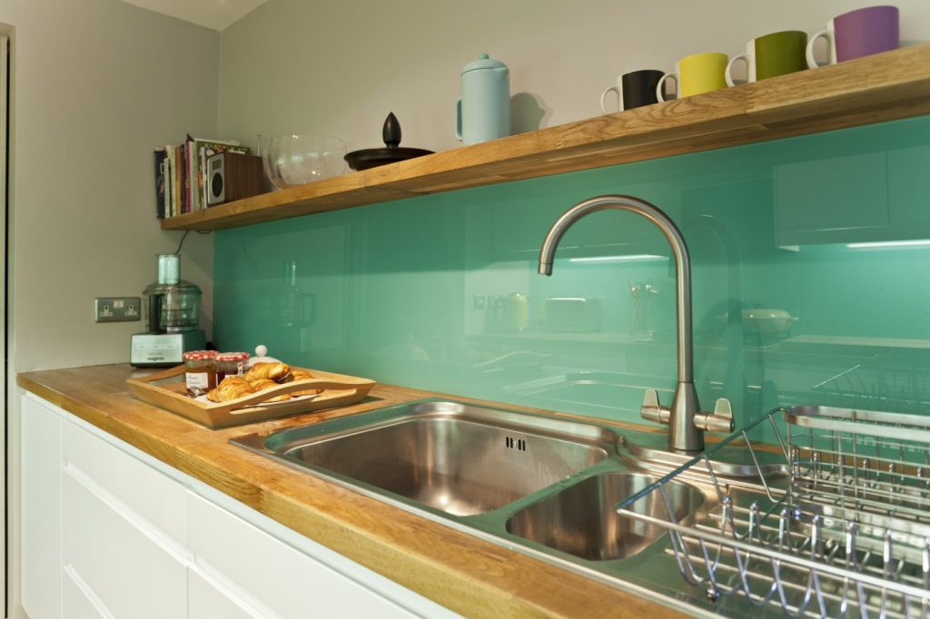 - Bei der Auswahl einer Küchenschürze müssen Sie zunächst entscheiden, welche Rolle sie in Ihrer Küche spielt. Wenn es als Hintergrund für helle Küchengeräte dient, sollte das Panel neutral gestellt werden. Und wenn Sie möchten, dass die Schürze der Hauptakzent ist, dann sollten Sie ein monotones Headset wählen und es mit einem kontrastreichen Farbfeld mit einem Fotodruck ergänzen.