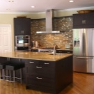 Die Küche im Loft-Stil ergänzt die MDF-Schürze mit Ziegelimitat perfekt. Darauf können Sie kleine Holzregale und Magnetbänder mit ungewöhnlichen Küchenmessern platzieren. Ein normales Kochobjekt kann mit einem edlen Holzgriff oder einer ungewöhnlichen Formklinge verziert werden.