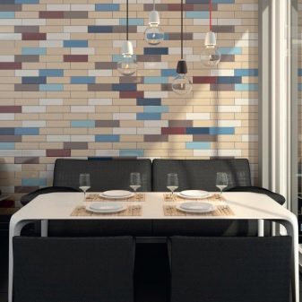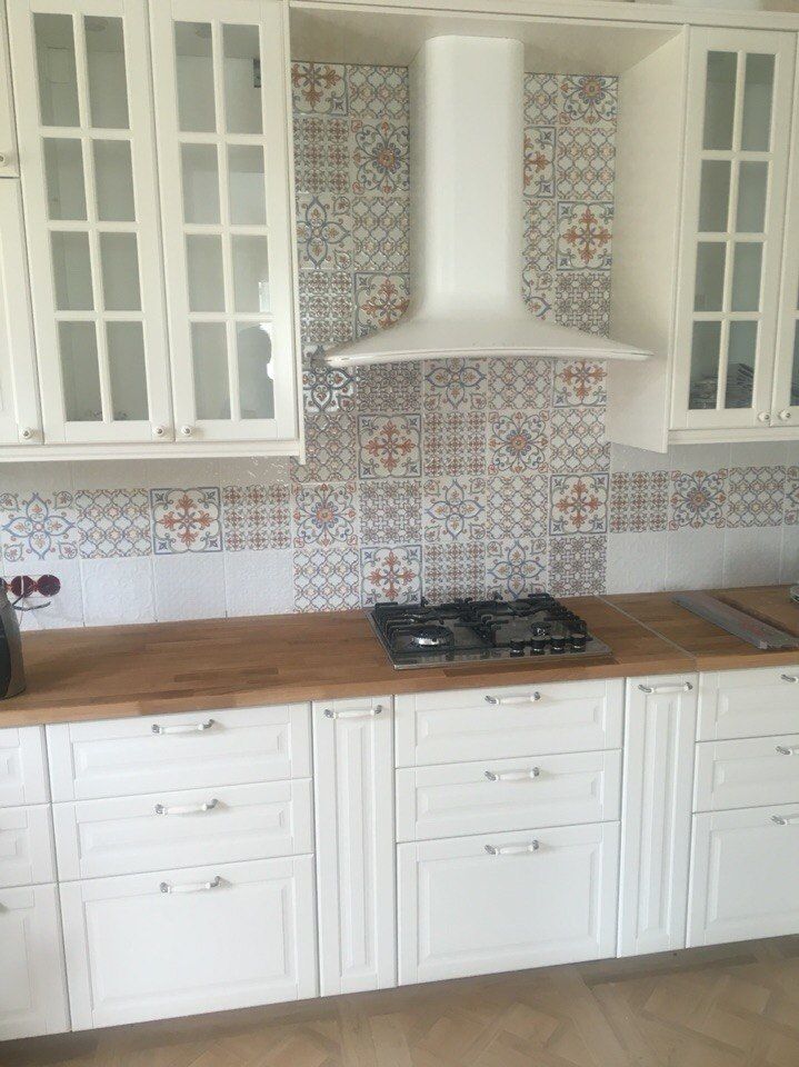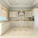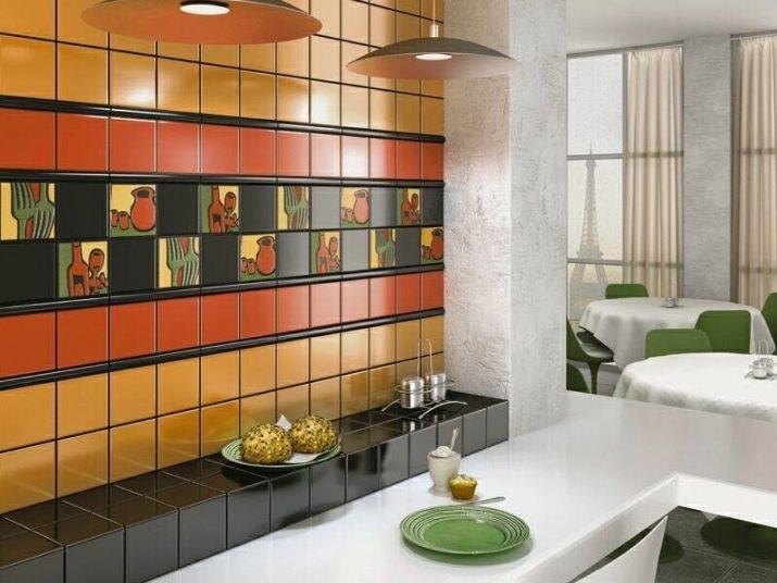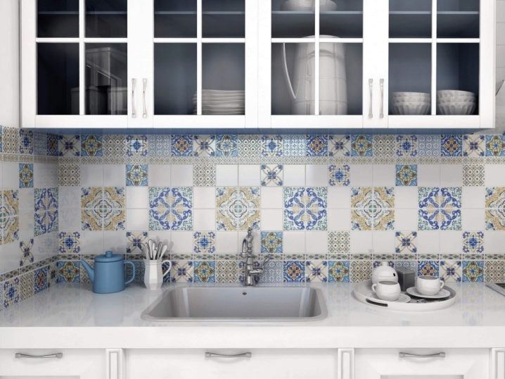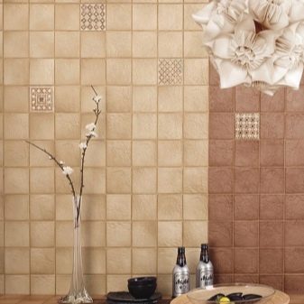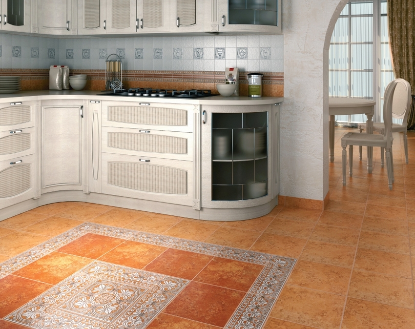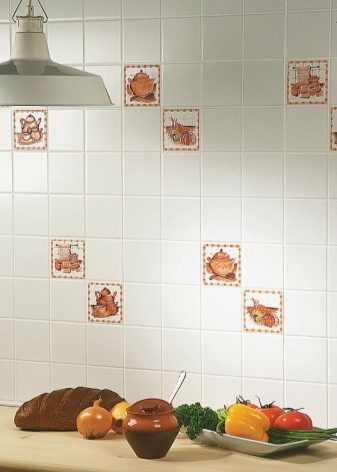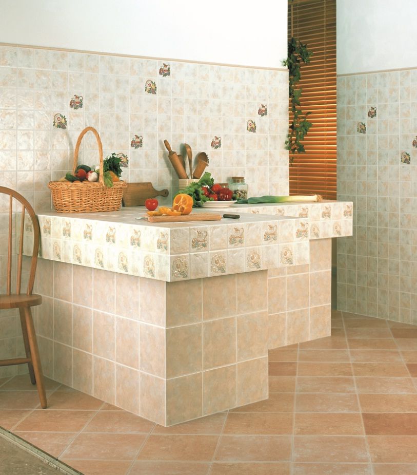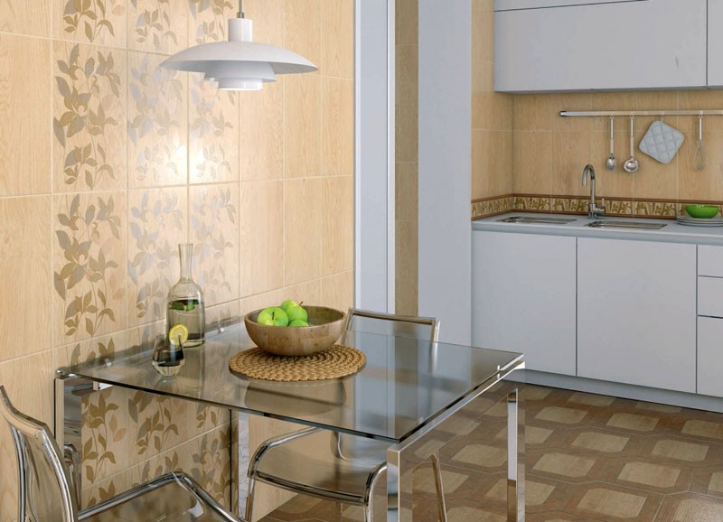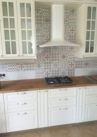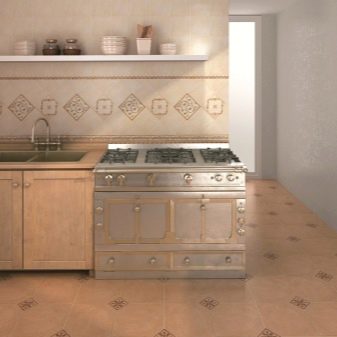 Dies ist jedoch nicht die einzige Option, denn Fantasy ist grenzenlos. Um verschiedene Oberflächen zu dekorieren, können Sie auch Produkte aus verschiedenen Kollektionen wählen. Diese Option ist geeignet für diejenigen, die die Küche origineller gestalten möchten, sowie die Eigentümer der Wohnung mit einem bereits reparierten Boden.