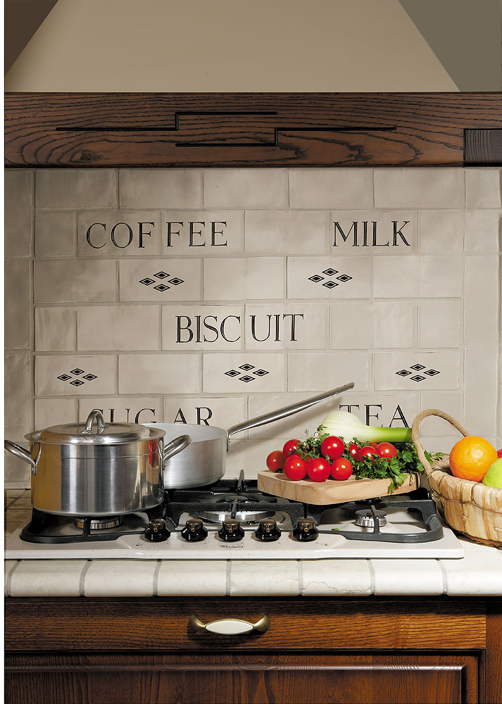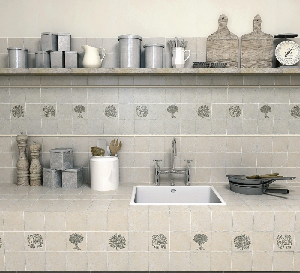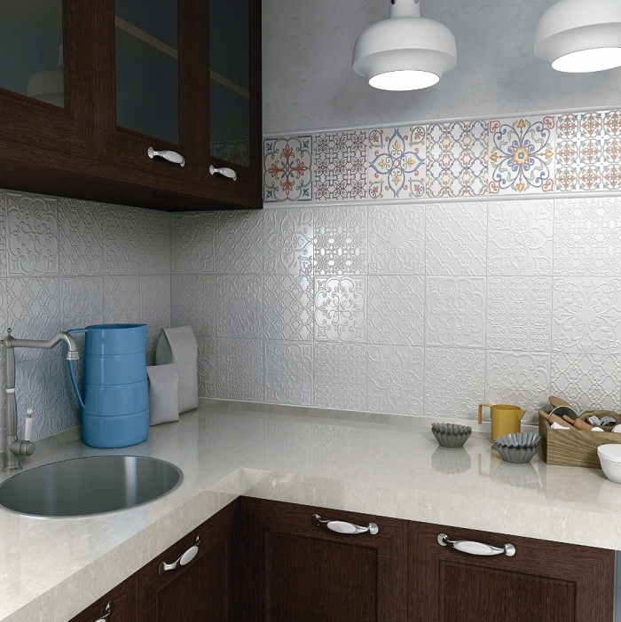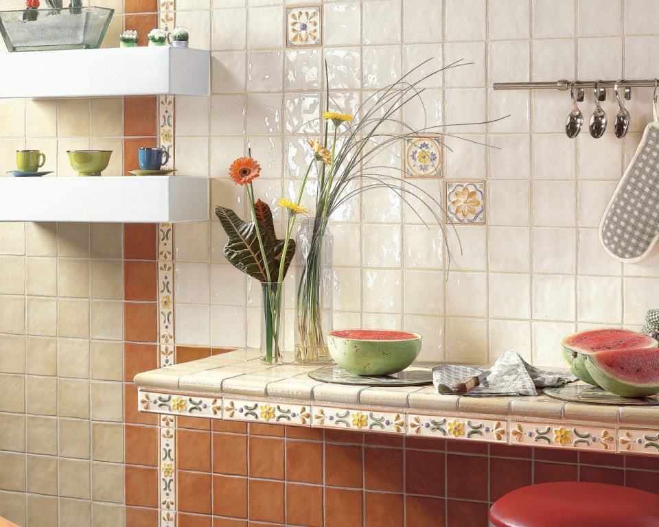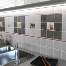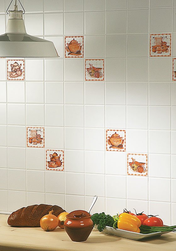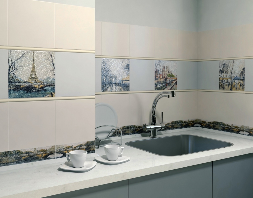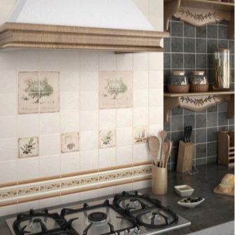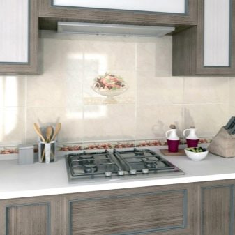 Darüber hinaus erhalten Sie eine Reihe von Produkten der Marke, erhalten Sie nicht nur Keramik Quadrate, sondern eine ganze harmonische Serie, einschließlich der grundlegenden Fliesen, Dekor, Grenzen und andere Elemente. Dank dieser können Sie eine wirklich stilvolle Komposition in Ihrer Küche erstellen.