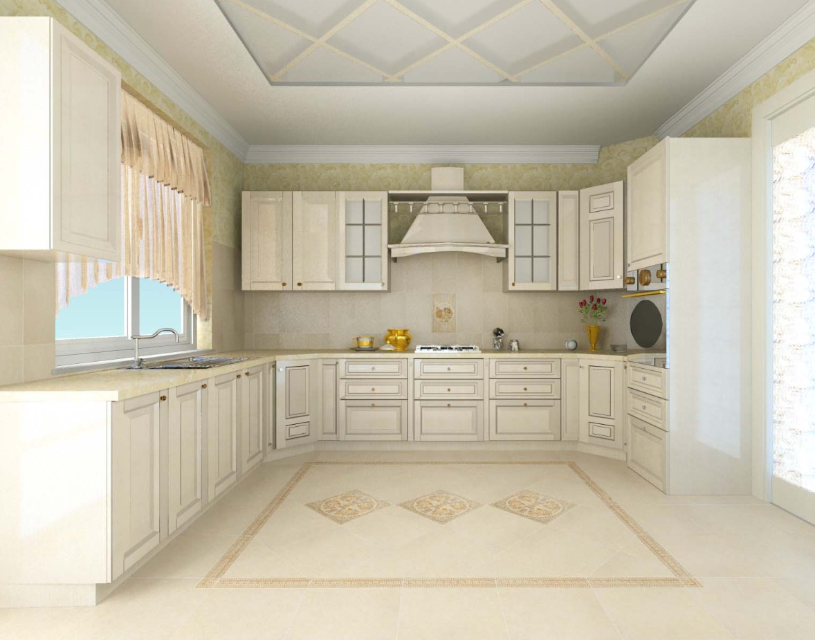 - für eine kleine Küche ist es besser, eine glänzende Kachel mit hellen Farben zu wählen, die den Raum visuell erweitert