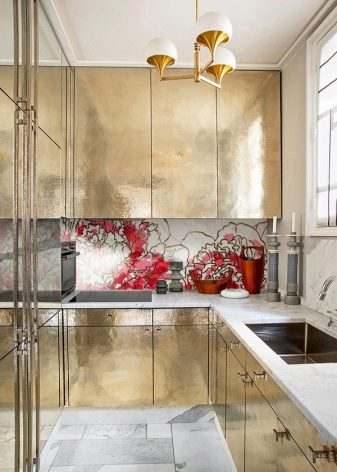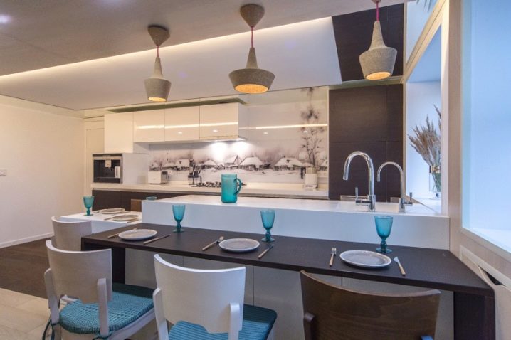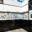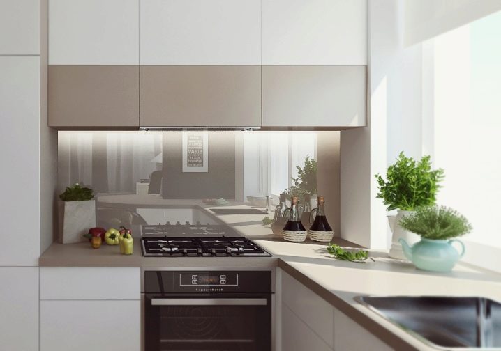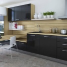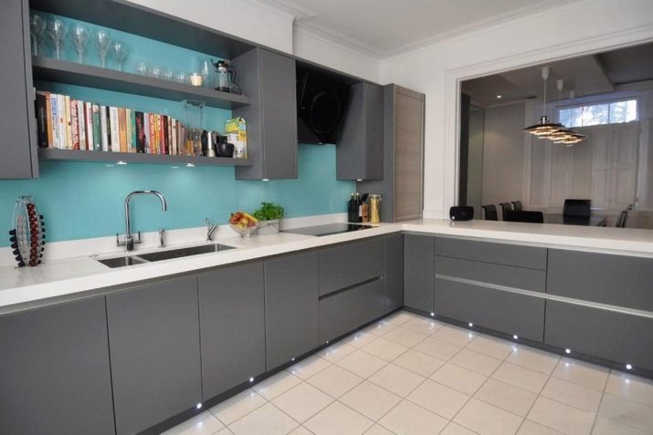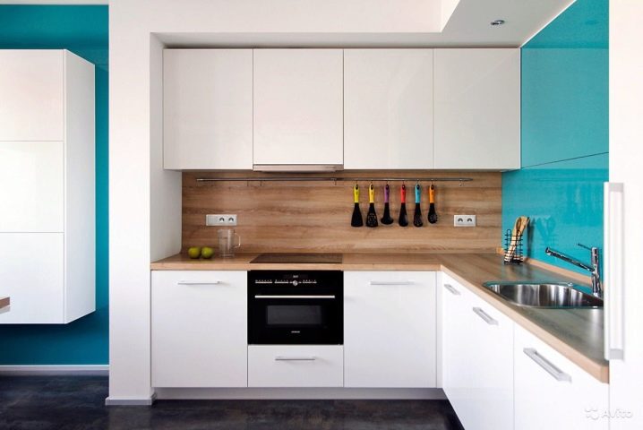 Die Farbe der Küchenschürze spielt eine ebenso wichtige Rolle. Wenn hochwertige und praktische Materialien eine Garantie für Zuverlässigkeit und Funktionalität sind, sind die gewählte Farbe und Art des Designs für die Ästhetik des gesamten Headsets verantwortlich. Daher ist es wichtig, Harmonie im Stil Design der Fassaden von Möbeln und Wandpaneelen zu erreichen.
