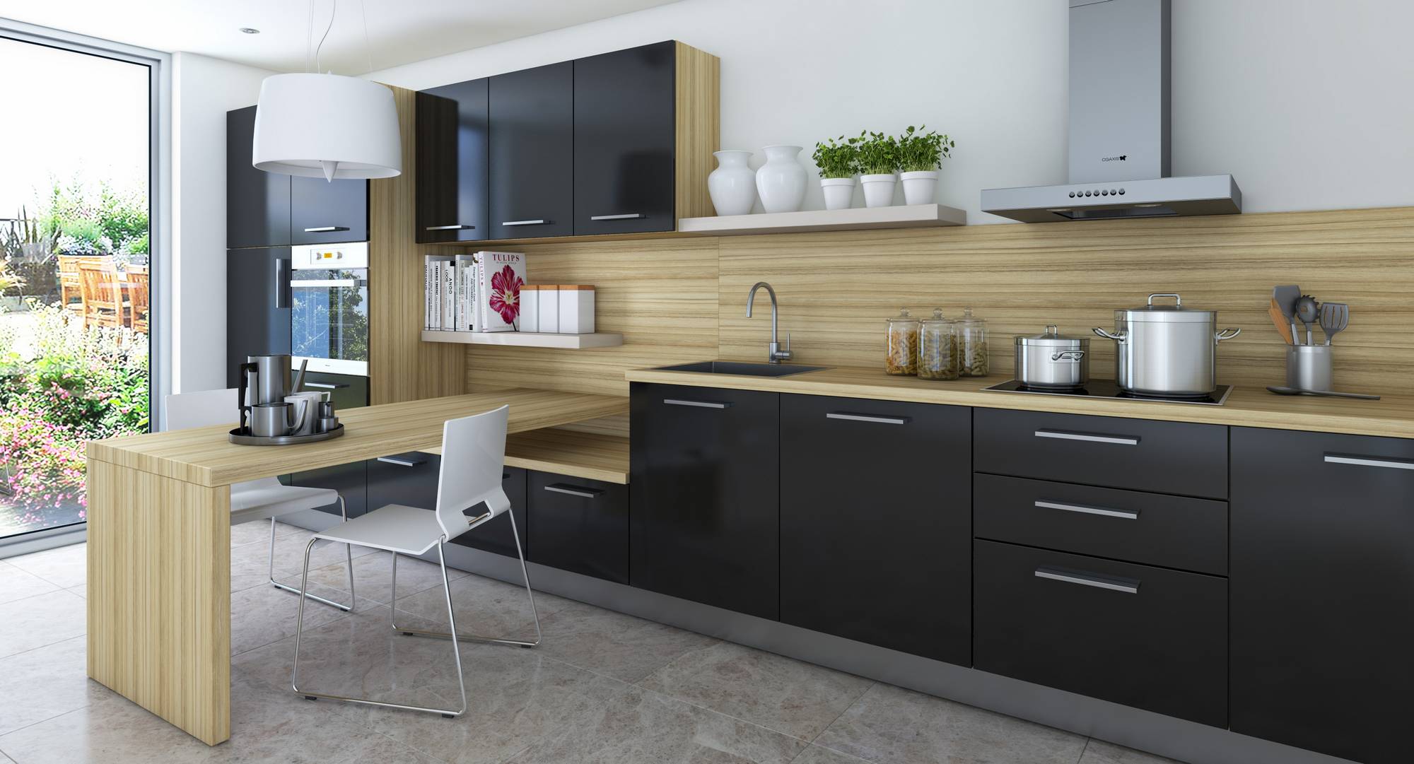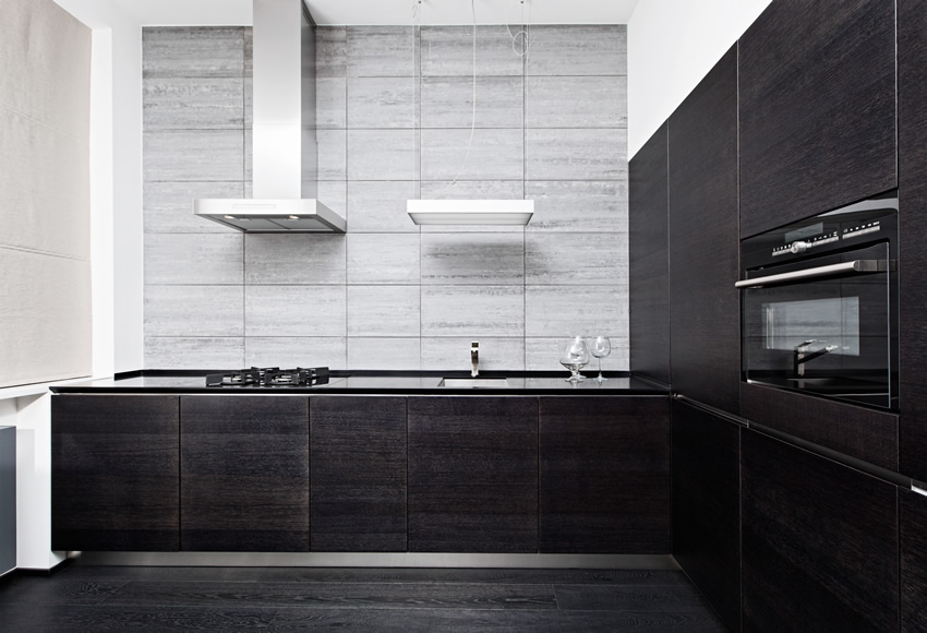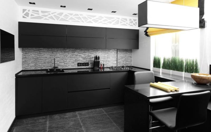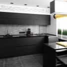 Küche in schwarz oder Wenge Farbe sollte mit hellen Farbtönen verdünnt werden. Ansonsten wird das Zimmer zu dunkel und düster sein.