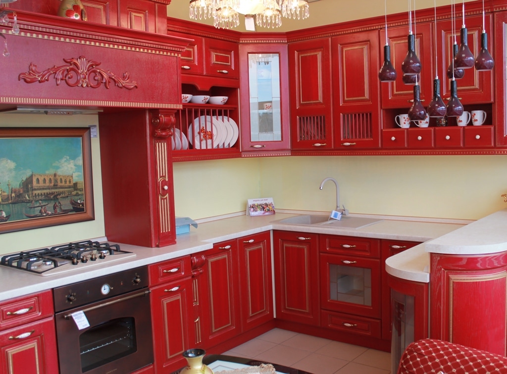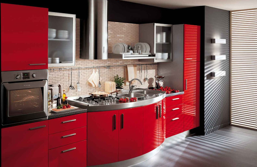 Die rote Farbe bietet die Möglichkeit, all Ihre Vorstellungskraft in die Praxis umzusetzen. Schließlich sieht es harmonisch mit Weiß, Schwarz, Orange, Blau, Aquamarin und anderen Tönen aus. Die Kombination mit Pastelltönen wird den Raum ruhiger und gemütlicher machen.Aber helle Farben werden einem solchen Interieur Originalität und Lebendigkeit verleihen.