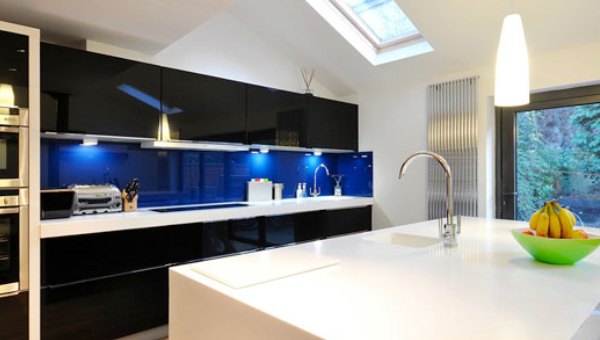 Es gibt eine große Menge an interessanten Beleuchtungsoptionen für eine Küchenschürze. Verschiedene Arten von Lampen funktionieren nicht nur, sondern auch ästhetisch. Die Wahl der richtigen Beleuchtung passt gut zur Gesamtlösung des Küchenbeleuchtungsskriptes. Die beliebtesten Lampentypen sind Halogen, Leuchtstoff und LED. Es gibt eine andere interessante Idee mit einer Hintergrundbeleuchtung für die Schürze, für die Sie eine Glasscheibe oder Häute benötigen.