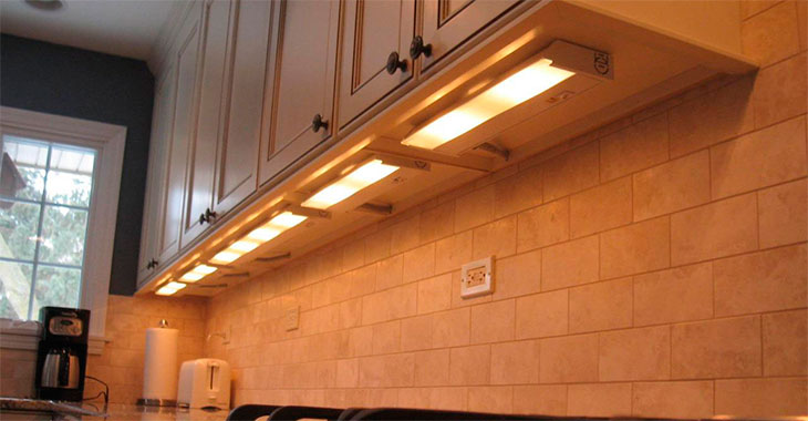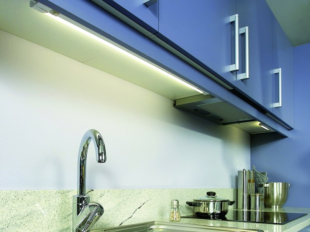 Wenn Sie ein fluoreszierendes Licht auswählen, erzeugen Sie ein verstreutes, leicht gedämpftes Leuchten in der Küche. So wird zum Beispiel bei einem Date, einem Abendessen oder einem Urlaub zu zweit eine romantische Atmosphäre geschaffen. Ein wichtiger Vorteil solcher Glühbirnen ist die Fähigkeit, sich nicht aufzuheizen, sowie einen minimalen Energieverbrauch. Lineare lange Flaschen befinden sich unter dem Wandschrank, sie können auch direkt an der Schürze befestigt werden oder eine spezielle Nische unter der Lampe schaffen.Auf dem Markt gibt es eckige Lumineszenzlampen, traditionelle lineare, die das Licht gleichmäßig über die Tischplatte verteilen.