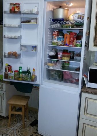 - Füllung. Einige moderne Modelle verwenden komplexe Funktionalität, was zur zusätzlichen Installation einiger Mechanismen führt. Sie fügen dem Gesamtwert auch ein kleines Gewicht hinzu.Besondere Aufmerksamkeit sollte den Kompressoren gewidmet werden, die einen großen Teil der Gesamtmasse ausmachen. Einige Modifikationen von Kühlschränken werden durch zwei solche Strukturen ergänzt.
