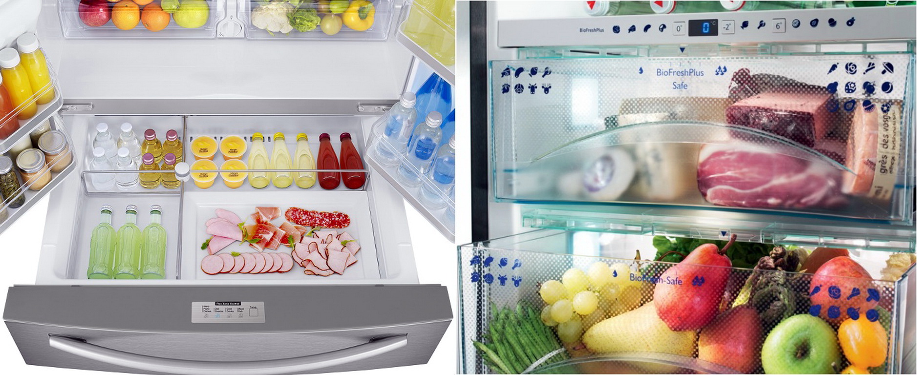 - Verteilung des Platzes im Gerät für spezielle Frischezonen. Zum Beispiel haben viele Modelle eine Null-Kamera. Flex cool, in dem die Vorräte für eine ziemlich lange Zeit frisch bleiben.