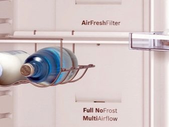 In Einkammerkühlschränken kann das Flaschenset im Basisset enthalten sein. Dies ist ein spezielles Gerät, das die Flasche sicher in einer aufrechten Position hält.Aber es gibt noch eine andere Möglichkeit: Der Flaschenhalter kann horizontal sein, mit einer Neigung nach hinten. Dieses Zubehör hält die Flasche horizontal und lässt sie nicht von einer Seite zur anderen rollen.