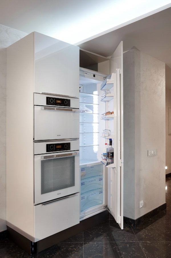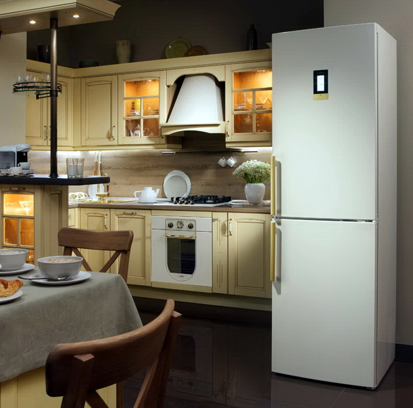 Es lohnt sich, die Größe zu betrachten. Ein Automodell passt möglicherweise nicht in Ihre Küche. Breite Geräte können 70 cm breit sein. Schmale Kühlschrank, in der Regel 60 cm breit.