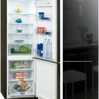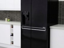 Viele Frauen glauben, dass die Türen aus schwarzem Glas zu häufig gewaschen werden müssen, während sie für den emotionalen Hintergrund der Küche nicht besonders geeignet sind. Die meisten waren sich einig, dass der Kühlschrank mit einem so eleganten Design alle Merkmale mit besonderer Sorgfalt und unter Verwendung der neuesten technologischen Fortschritte ausgearbeitet hat.