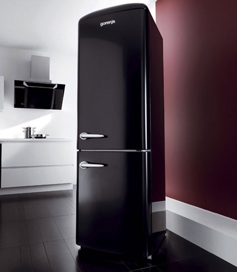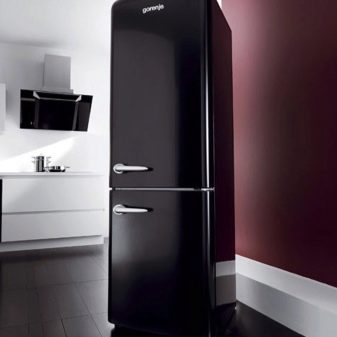 - Abmessungen des Kühlschranks muss in Harmonie mit der Größe der Küche sein. Also, für eine kleine Küche sollte einen kleinen Kühlschrank aufheben. Wenn die Proportionen nicht erreicht werden, wird das Gleichgewicht im Raum gestört, und der schwarze Kühlschrank bricht aus dem Bild.