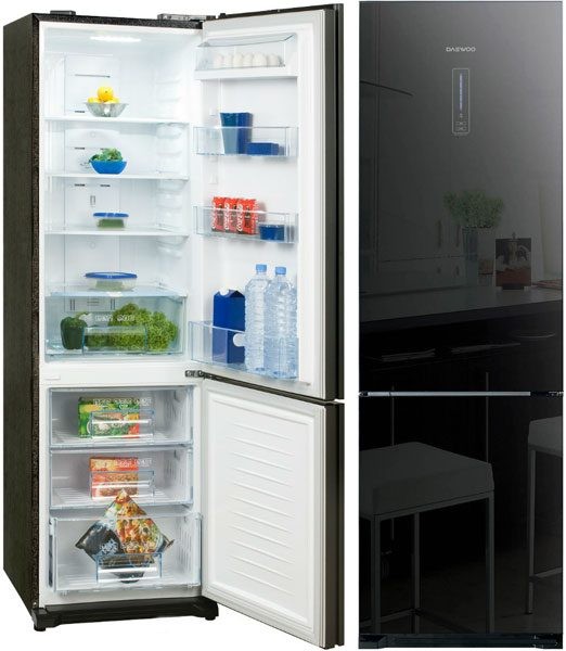- Unübertroffene Erscheinung. Sie können das Glas nach Ihrem Geschmack auswählen, so dass sich der Kühlschrank harmonisch in das Interieur der Küche einfügt. Große Spiegel oder schwarzes Glas im Gehäuse schaffen den Effekt, den gesamten Raum zu erweitern.