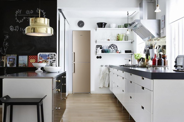 Weiß und Schwarz sind perfekt mit anderen Farben kombiniert. Aber die einmalige Verwendung solcher Haushaltsgeräte im Innenraum scheint erfolglos. Berücksichtigen Sie bei der Auswahl eines dieser Kühlschränke, ob sich in Ihrer Küche andere schwarze oder weiße Objekte befinden.