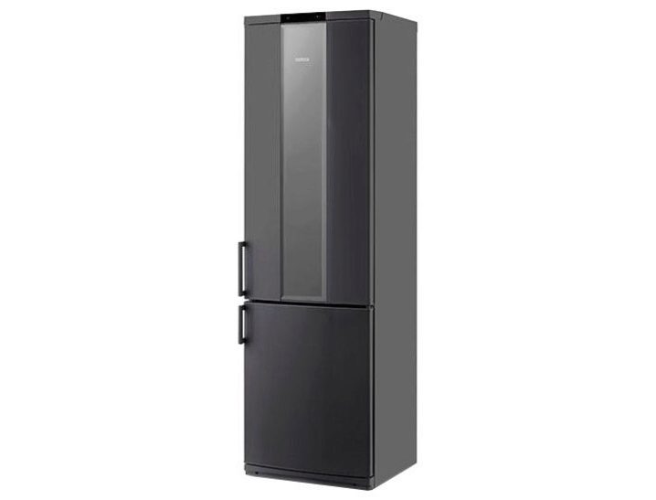 Fans der Strenge im Innenraum bevorzugen dunkelgraue Kühlschränke. Dies ist die perfekte Wahl für die Küche in einem modernen minimalistischen Design. Wie die silberne Version passt diese Ausstattung besser in Räume mit einem Headset, Boden- und Wandverkleidung in kalten Farben.