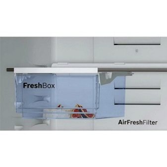 Diese Einheit ist mit einem System ausgestattet "Voller kein Frost", Funktion der Unterkühlung und Superfrostung, und auch Tonanzeige. Alle internen Raum wird durch System gekühlt"Multi-Luftstrom", was bedeutet, dass die Luft aus dem Gefrierfach durch spezielle Öffnungen in das Kühlfach gelangt, um eine gleichmäßige Luftverteilung zu gewährleisten. Jede Öffnung hat einen speziellen Kohlefilter, der die Luft von Schmutz und Bakterien befreit. In regelmäßigen Abständen müssen die Filter gewechselt oder gereinigt werden.