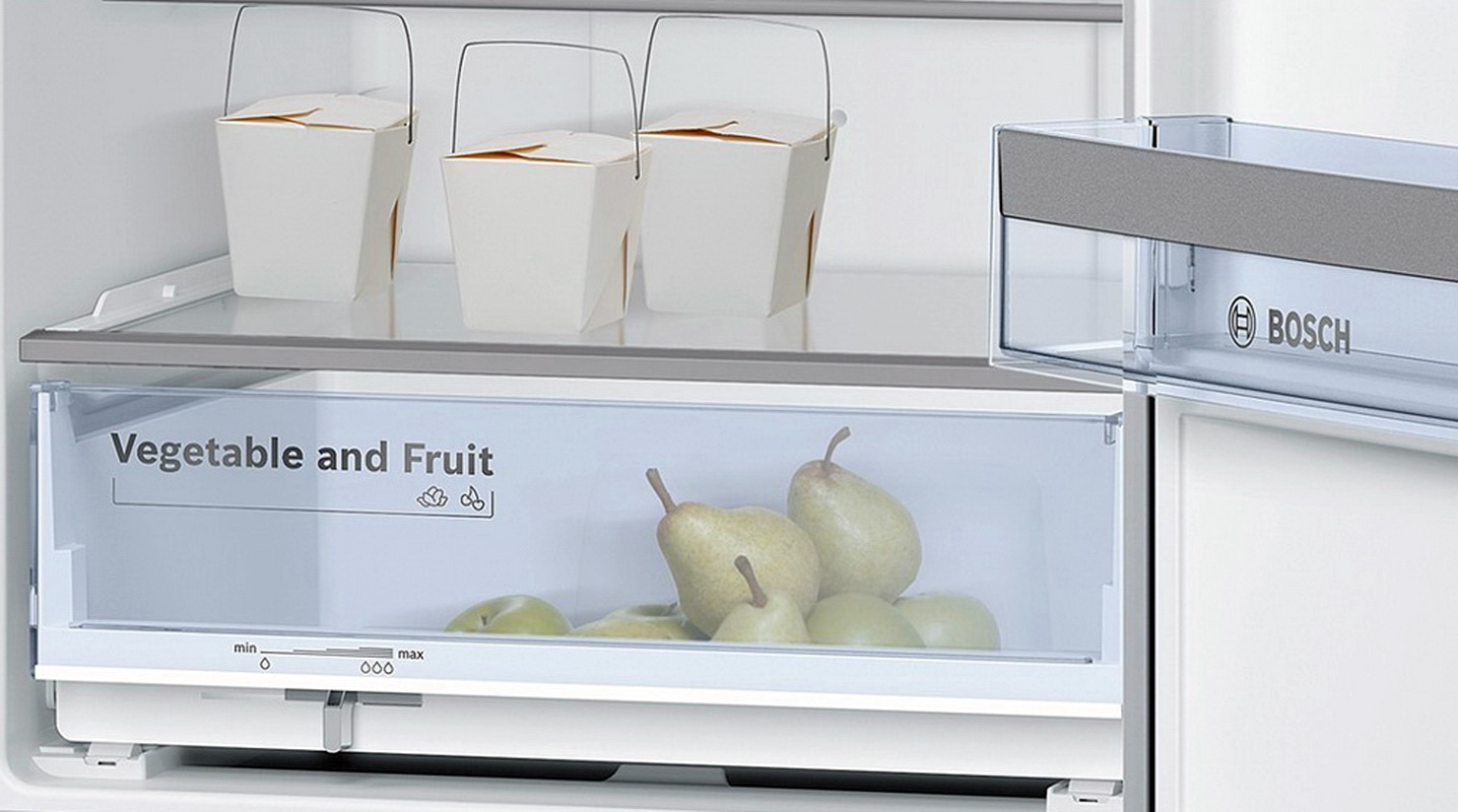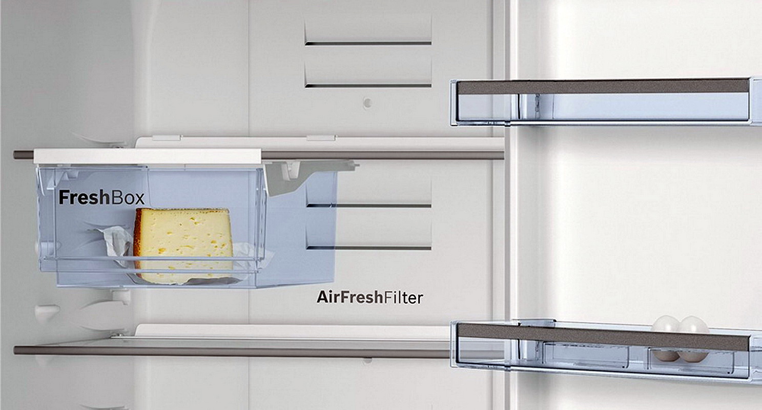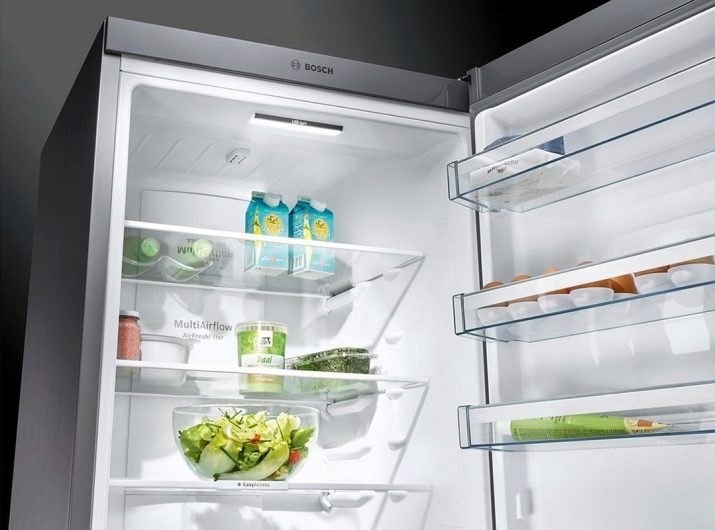 Der große Vorteil von Bosch-Kühlschränken ist, dass der Hersteller eine große Auswahl an Optionen für seine Modelle bietet. Es gibt Modelle, die alle Funktionen enthalten, es gibt solche, die nur einzelne enthalten. Eine der wichtigsten Optionen ist die autonome Aufrechterhaltung der Zirkulation der kalten Luft im Kühlschrank. Dies bedeutet, dass, wenn es plötzlich versehentlich von der Stromversorgung getrennt wird, die gewünschte Temperatur für etwa achtzehn Stunden im Inneren bleibt.