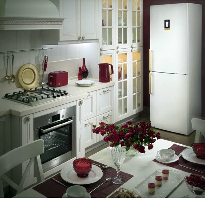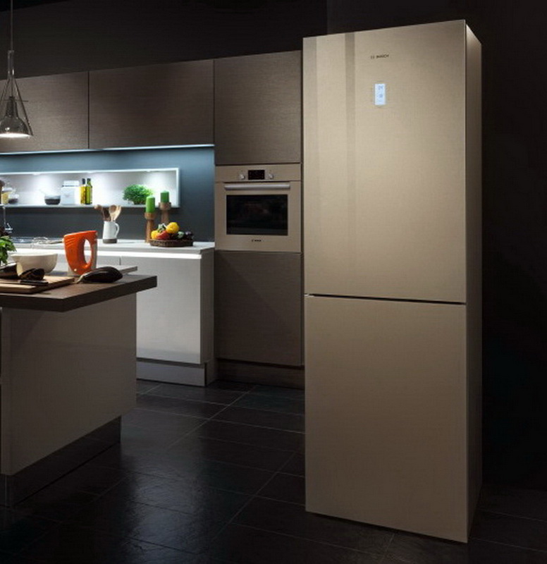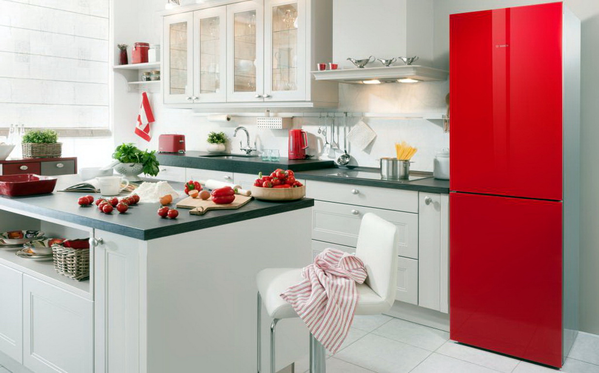Vor allem beim Kauf achten wir auf das Aussehen der Ausrüstung. Die Firma Bosch bietet sehr attraktive Außenkühlschränke in verschiedenen Farben an: schwarz, weiß, silber, rot - Sie können jeden Farbton von dieser Farbskala nach Ihrem Geschmack unter den Möbeln in Ihrer Küche wählen.