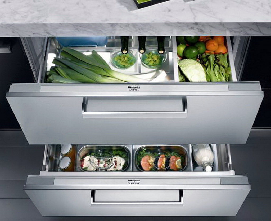 - Die Materialien, aus denen die Regale hergestellt wurden. In den meisten Modellen verwendet Ariston High-Tech-gehärtetes Glas, das unübertroffene Haltbarkeit und Zuverlässigkeit bietet;