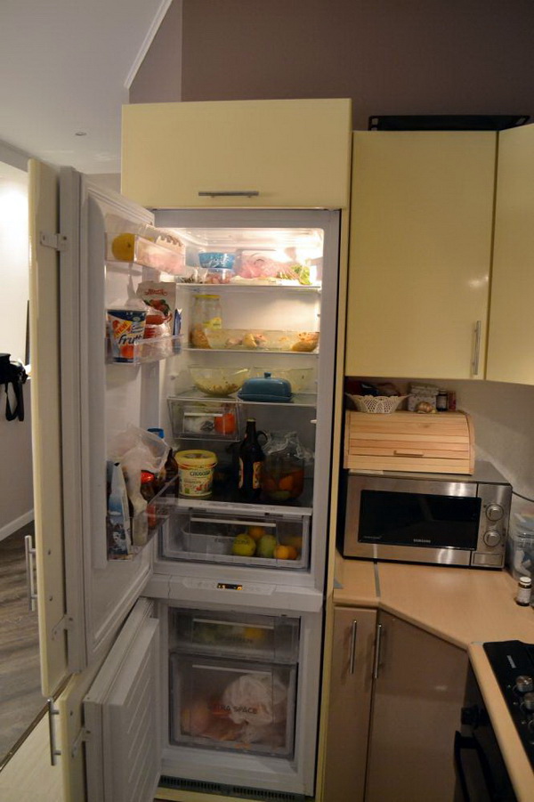 - Durchdachte Ergonomie, was die Verwendung des Kühlfachs stark vereinfacht. Es ist sehr praktisch für den Benutzer, Lebensmittel zu finden, einschließlich Konserven, Fleischbällchen und anderen ähnlichen Produkten;