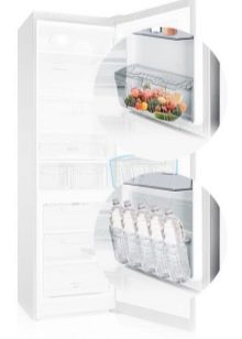 Dieses Modell hat eine leicht nicht standardisierte Struktur - die Hersteller haben sich entschieden, die Höhe zu erhöhen. Dadurch erhöht sich natürlich der Nutzraum im Kühlfach. Seine Kapazität beträgt 223 Liter - eine großartige Gelegenheit, in gekühlter Form viel Essen und vorgekochtes Essen zu behalten.