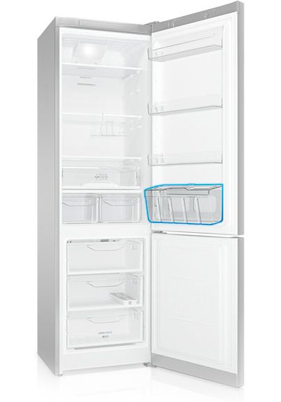 Alle Indesit No Frost Kühlschränke unterscheiden sich in der Schieberbewegung der Regale und dem großen Öffnungsradius der Tür - das ist auch eine Neuheit, die den neuesten Indesit Markenmodellen innewohnt.
