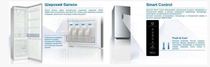Die technischen Eigenschaften dieses Haushaltsgeräts unterscheiden sich nicht von anderen betrachteten Modellen. Enteisung - vollautomatisch, Leistung - auf der richtigen Ebene, das Vorhandensein zusätzlicher Funktionen.