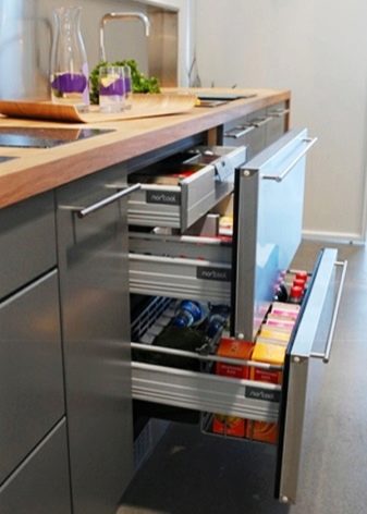 Das Modell sollte basierend auf dem Interieur Ihrer Küche ausgewählt werden. Hersteller bieten Kühlschränke mit verschiedenen Arten von Abdeckung. Sie können ein Gerät aus Glas, Edelstahl oder einfach lackiert kaufen.
