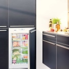 Die Tiefe dieses eingebetteten "Babys" beträgt nur 40 cm, und die Breite von 45 cm ist sehr selten. Es ist unverzichtbar in einer Situation, in der am Ende der Reparatur eine kleine Nische in der Wand erscheint. Solche Geräte haben keine große Kapazität und keinen Gefrierschrank. Wie sich jedoch an den Kundenbewertungen ablesen lässt, passt der Kühlschrank erstaunlich gut in die Situation.