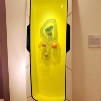 - Musical. Der Kühlschrank, genannt "Cooltone".Ihr Hauptzweck ist Kühlung von Konserven und Getränken. Das Highlight des Designs liegt im modischen, außergewöhnlichen Design. Eingebaute MP3- und CD-Player sowie ein FM / AM-Radio-Player und ein iPod-Ständer bieten eine einzigartige Gelegenheit, Getränke zu genießen und Ihre Lieblingsmusik zu hören.