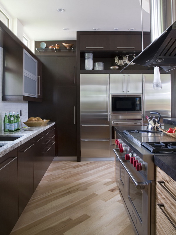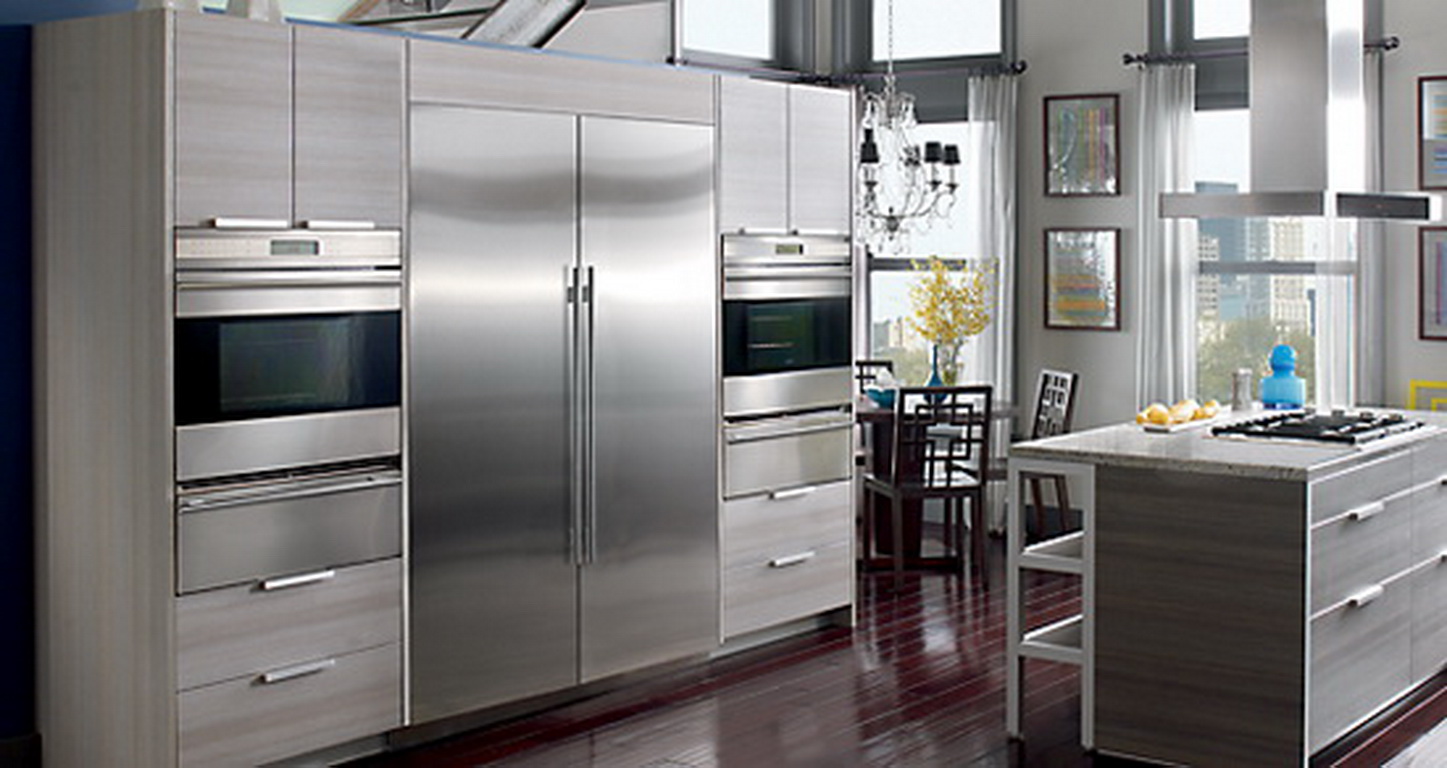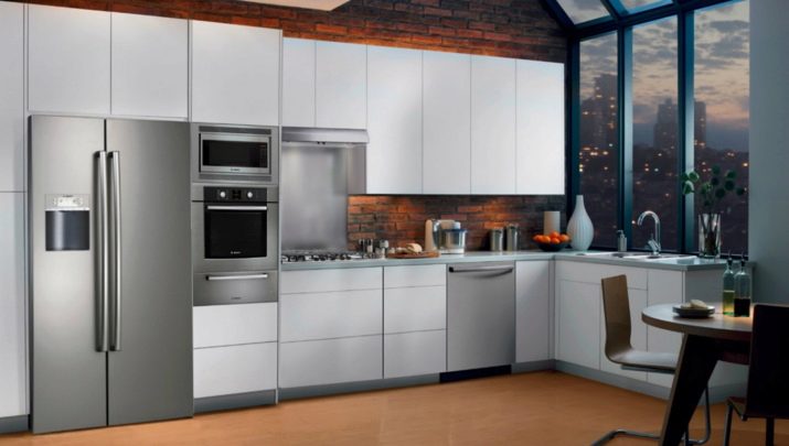 Diese Art von Kühlschrank schmückt ideal die Küche, dekoriert im Stil von "High-Tech", die Farbe der Platte aus Silber harmoniert wunderbar mit der Dekoration aus Metall und Glas.