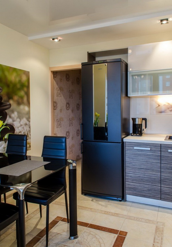 Der gut platzierte Kühlschrank schafft im Innenraum einen einzigartigen Wohnkomfort. Die Wahl des Ortes hängt von den Raumabmessungen ab, außerdem ist es sinnvoll, das Gerät so einzustellen, dass es bequem zu garen ist.