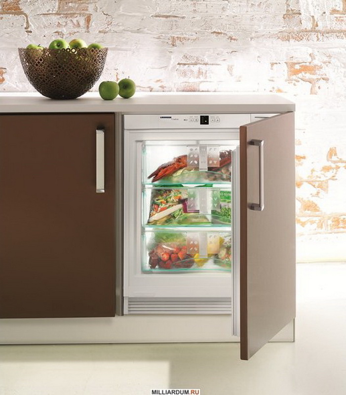 Dieser Typ ist tiefer und breiter als die anderen, aber seine Höhe beträgt nicht mehr als 180 cm Das Gefrierfach ist klein und befindet sich oben, die Breite variiert von 55 bis 80 cm.