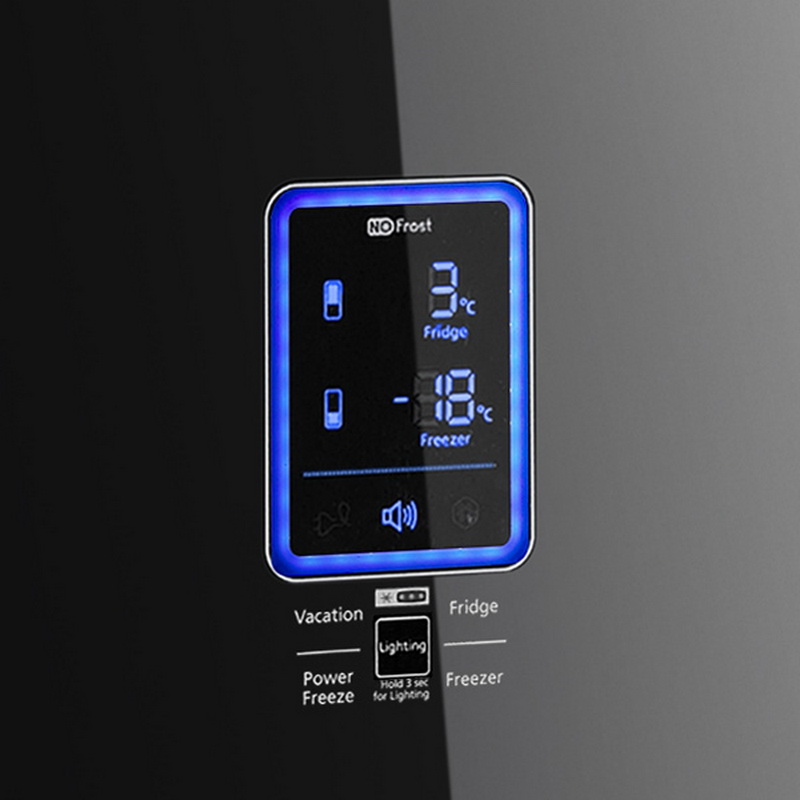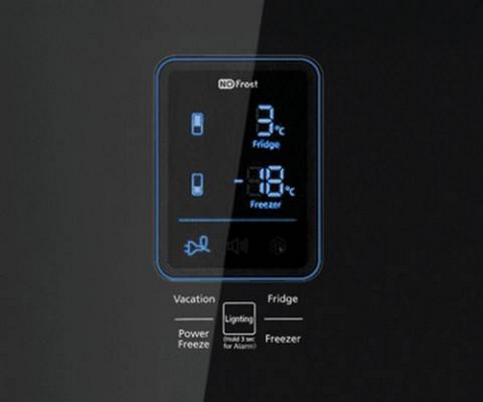 - Anzeige. Ein eingebauter Türbildschirm informiert über Produkte, Temperatur und wichtige Daten.