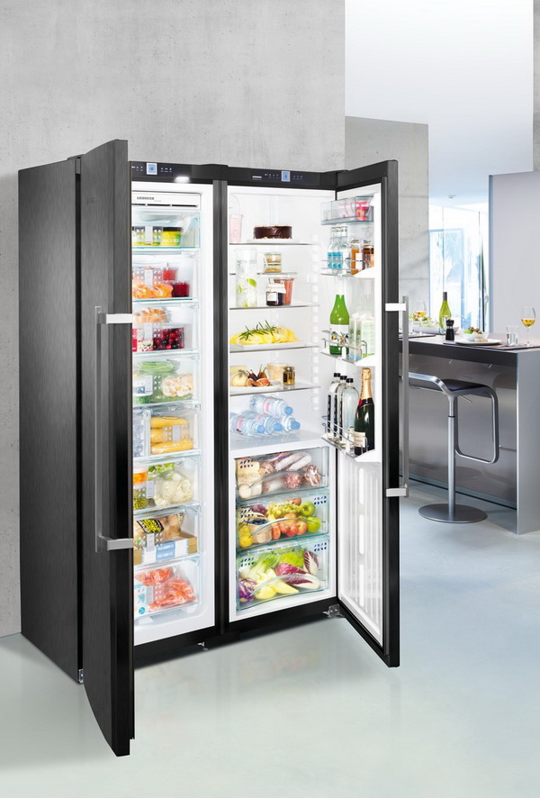 Eine solche Vielfalt kann in einer Reihe von "Side-by-Side" -Modellen gesehen werden. Eine Eigenschaft der Ausrüstung kann eine eingebaute Stange sein, sowie zwei Zonen der Frische - nass und trocken oder Flügeltüren.