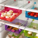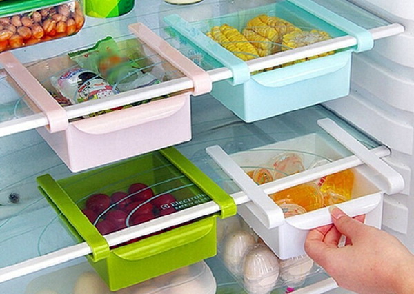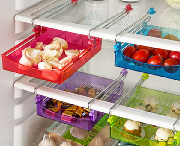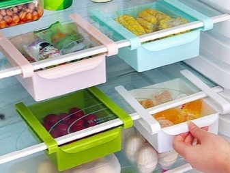 - Regale - spezielle Ergänzungen zur Aufrechterhaltung der Funktionalität. Auf einem solchen Ständer können Sie problemlos Produkte platzieren oder Gemüse und Obst in das Fach geben.