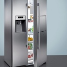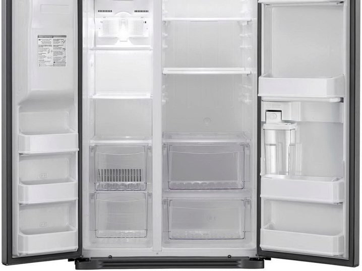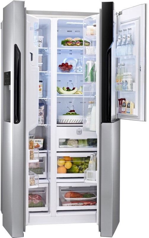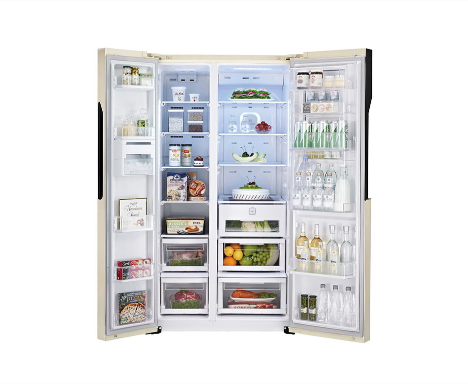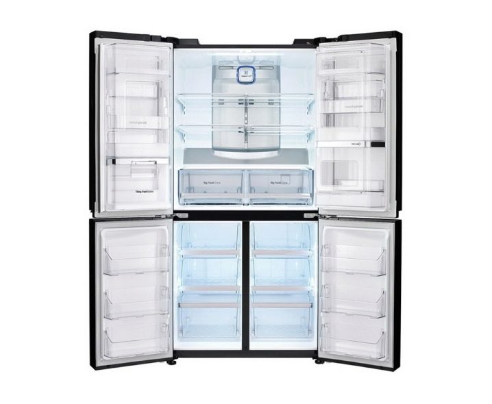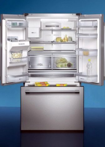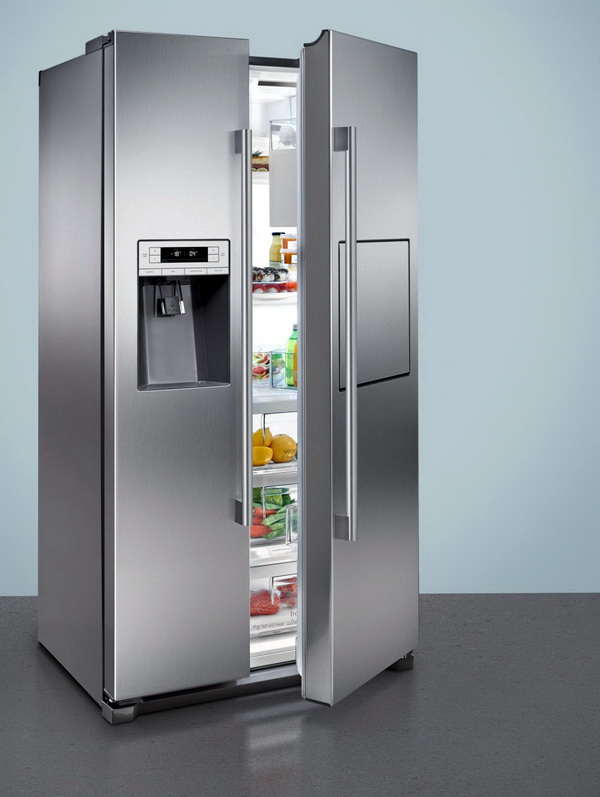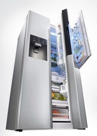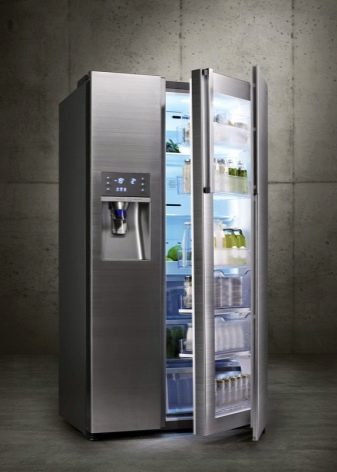Und schließlich wird die elitärste und größte Größe von Kühlschränken von Side by Side vertreten. Sie haben mehrere Kameras und sie sind in der Nähe. Der Gefrierschrank ist auf der linken Seite und der Kühlschrank ist auf der rechten Seite. Die Breite kann 1 m und die Tiefe - 80 cm betragen Die Abmessungen erlauben es, eine große Anzahl von Produkten aufzunehmen, und spezielle Wandbeschichtungen halten das Essen länger frisch.