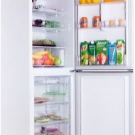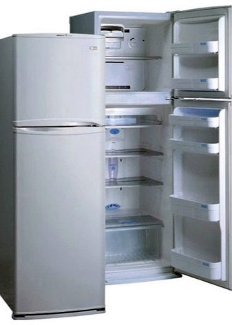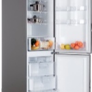 Das Design des Zweikammermodells hat die Möglichkeit der Mehrstromkühlung, der Anzeige des LED-Typs und der No-Frost-Funktion. Stellt eines der veralteten Modelle dar. Dient lange, verbraucht aber viel Strom bei der Arbeit.