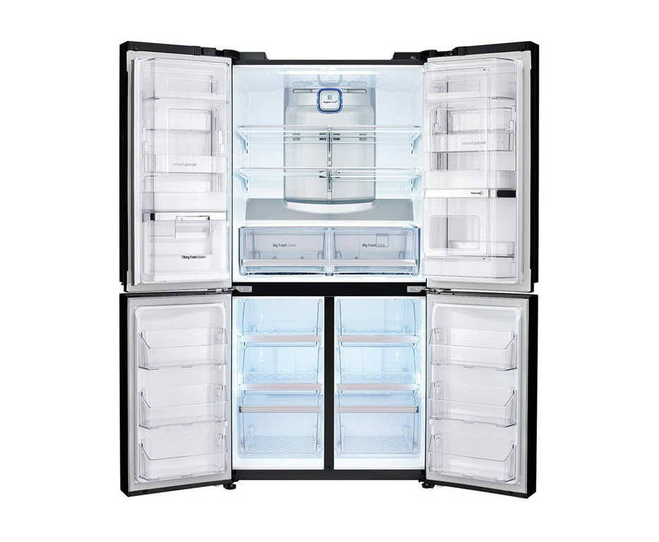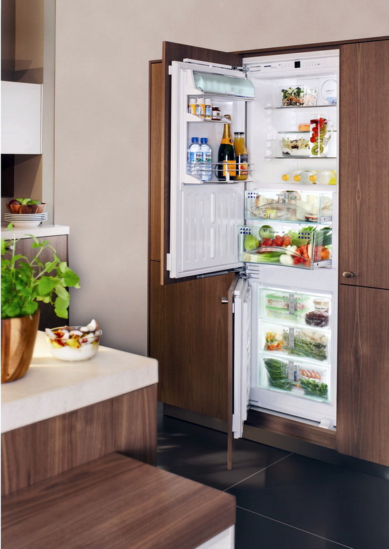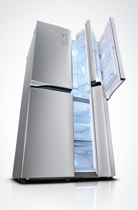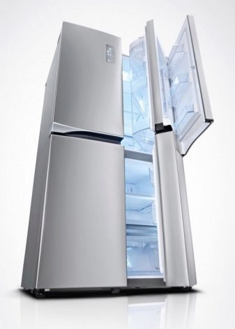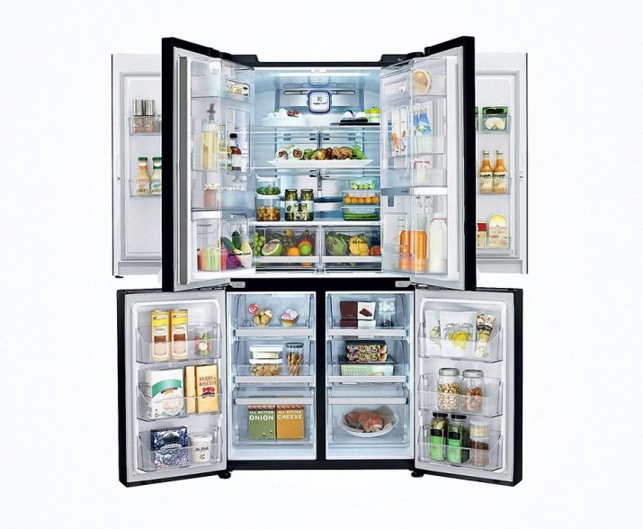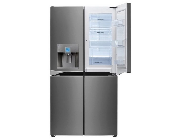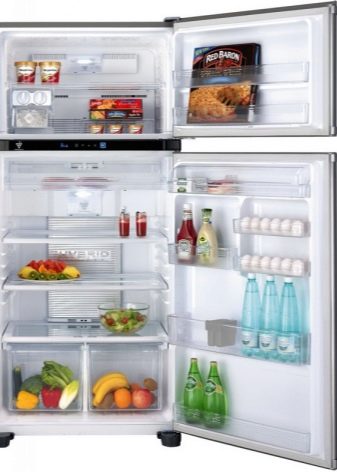 - "Intelligente Öko-Tür". Designs mit einem solchen Zusatz werden oft als Zwei-Kammer-Systeme bezeichnet. Sie haben eine spezielle Art von Tür, die die Kälte im Inneren halten kann, auch wenn der Kühlschrank geöffnet ist. Zusätzlich ist eine weitere Tür eingebaut, durch die die Kälte innen gespeichert wird und auch der Zugang zu den Produkten offen ist;