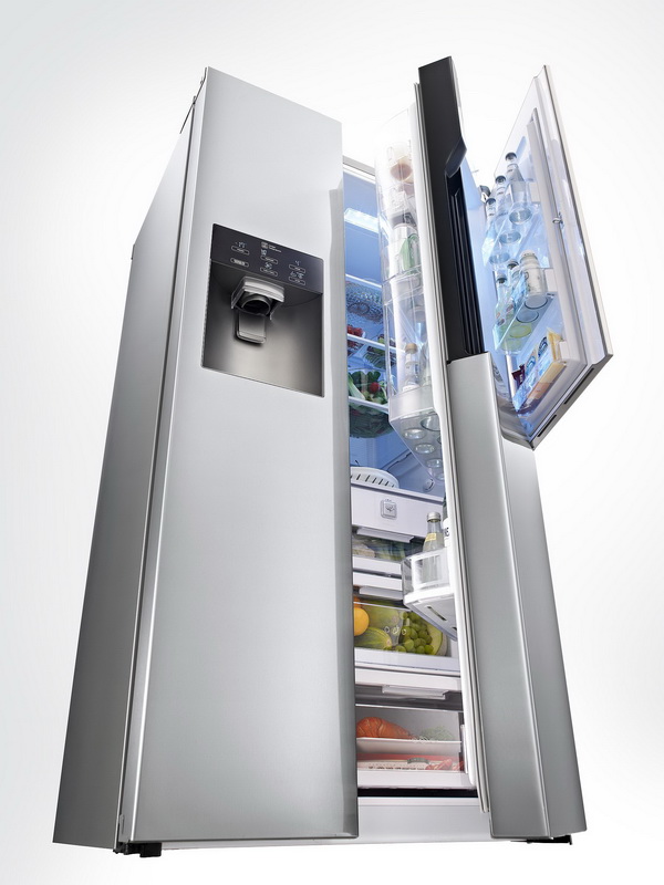 - berührungslos - ist der neueste Weg, um den Betrieb von Kühlschränken zu regulieren. Da LG Modelle mit einer großen Anzahl von Funktionen ausstattet, war die eingebaute Version der Steuerung über das Internet das Ergebnis eines solchen Fortschritts. Das System verfügt über ein berührungsempfindliches Display mit Internetzugang - tatsächlich ist es ein eingebautes Gadget. Im Speicher des Kühlschranks können Informationen zu Produkten enthalten sein, in deren Basis sich eine Webcam befinden kann. Die Funktion des Geräts besteht darin, den Kaloriengehalt der Produkte zu berechnen, eine richtige Ernährung für den Tag zu erstellen und die Sättigung des Geschirrs mit dem Körpergewicht zu vergleichen.